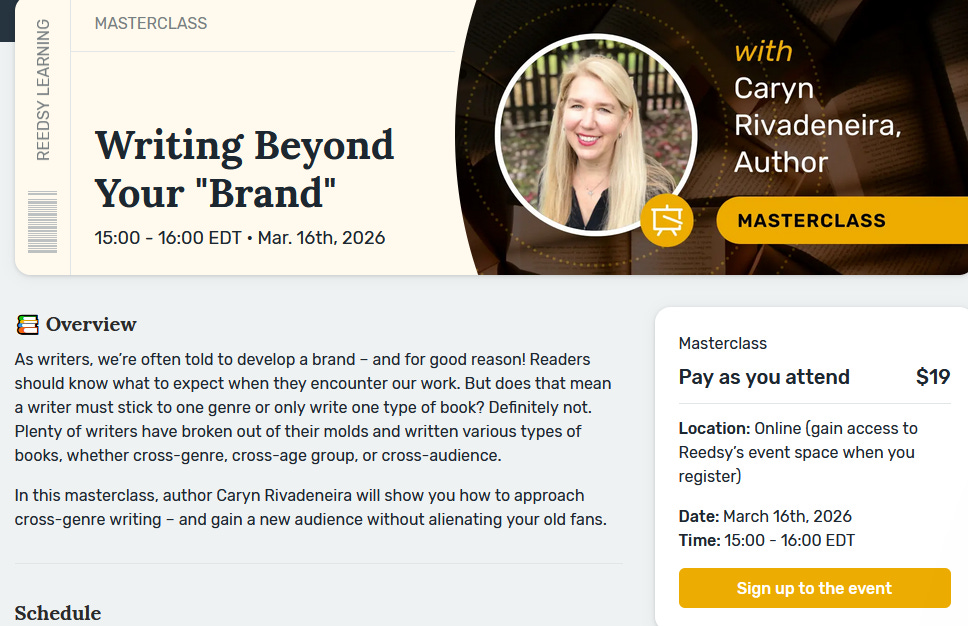 If you are not familiar with the platform, it is a place where writers can find a wide range of resources designed to support their craft. They organize weekly masterclasses, covering topics that matter to serious writers.